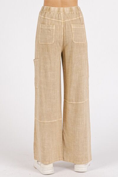 Mittoshop Washed Elastic Waist Cargo Wide Leg Pants