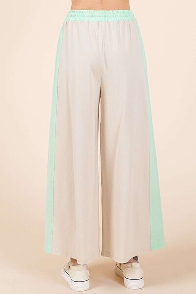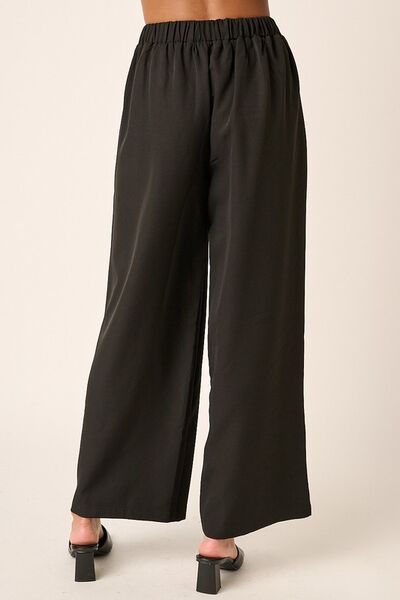 Mittoshop Gauze Elastic Waist Pleated Wide Leg Pants
